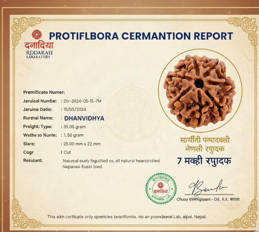 Each bead is 100% Pure and Original, sourced from its native land, and comes with a Laboratory Certification for authenticity. We ensure you receive a powerful, energized, and genuine Seven Mukhi Rudraksha for maximum spiritual and material benefits.